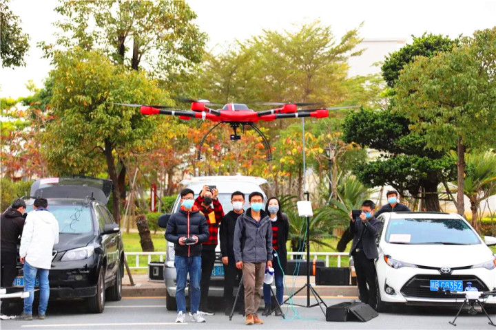 巡查、播报、测温、记录、喊话、劝离……曾经作为摄影发烧友手中神器的无人机经过技术升级后,在当前的疫情防控阻击战中大显身手。2月6日上午,潮南区组建了一支战“疫”空中力量,10架能测体温会喊话的无人机正式“上岗”,在10组巡航人员的操控下分别对全区11个镇(街道)开展巡查,成为基层防疫力量的新成员。