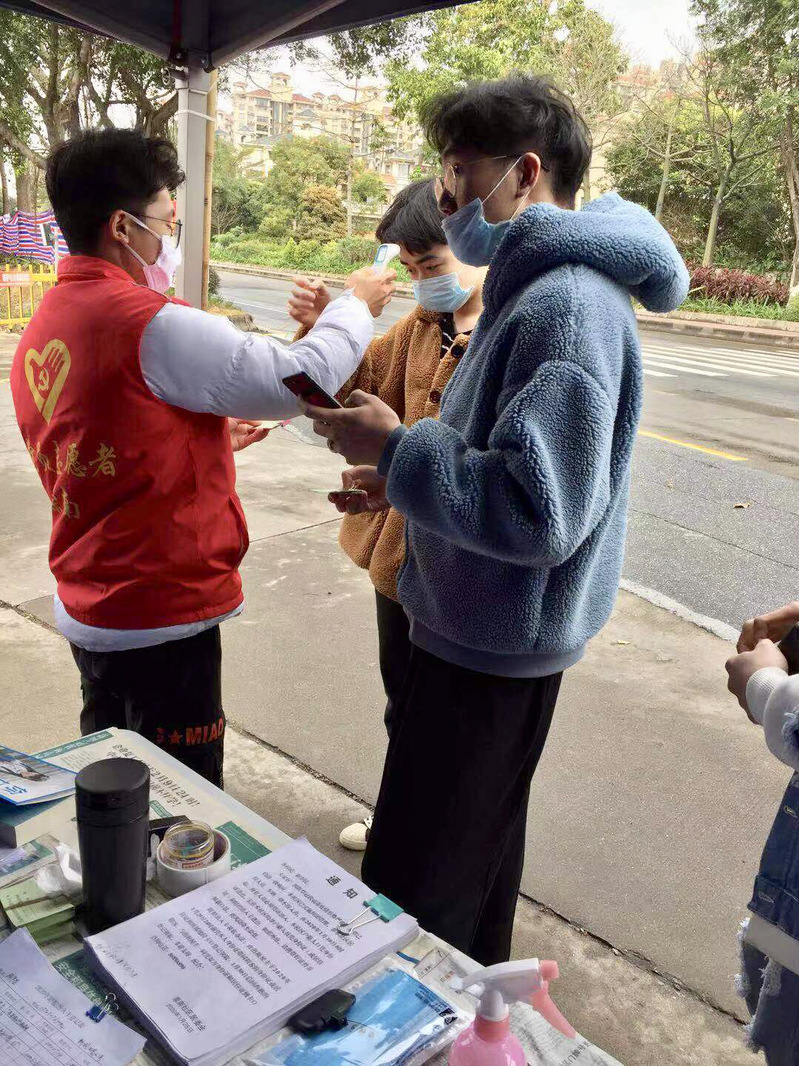 (林晓玲等学院多名学生返乡后都积极参与到家乡社区的防疫志愿工作)