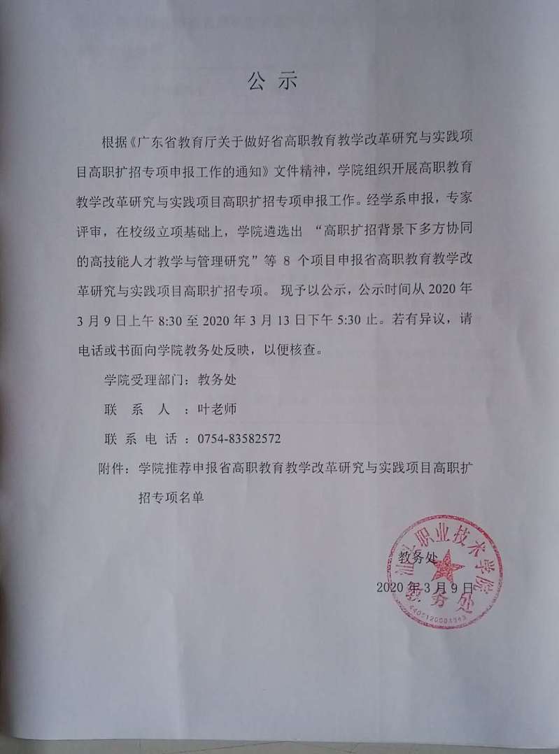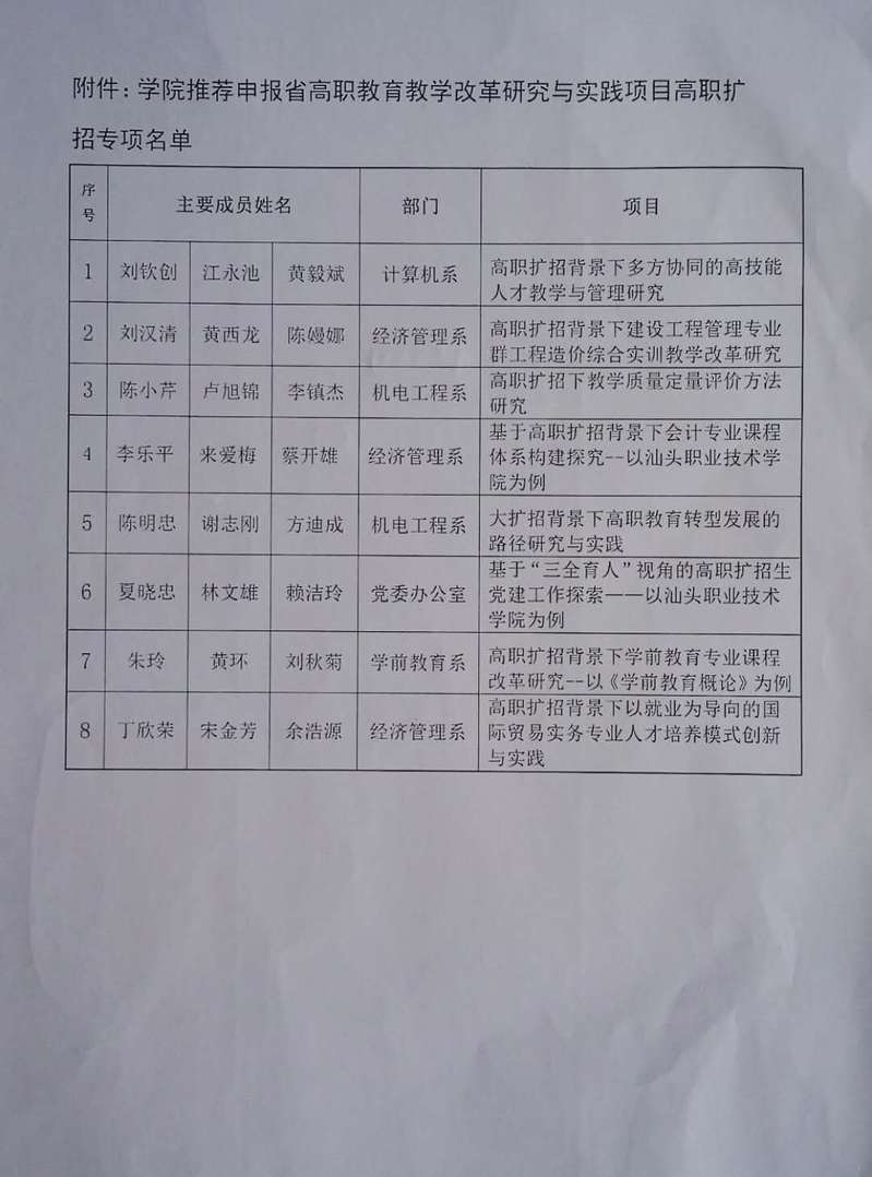 学院推荐申报省高职教育教学改革研究与实践项目高职扩招专项名单公示