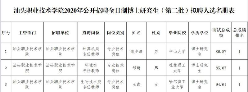 附件:英国正版365官网2020年公开招聘全日制博士研究生(第二批)拟聘人选名册表