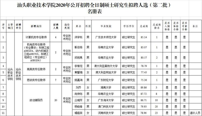 根据《汕头市市属事业单位2020年公开招聘全日制硕士研究生公告》和《汕头市2020年公开招聘1000名全日制硕士研究生补充公告》等的有关规定和要求,经面试加专业试讲(专业考核)、体检、考察合格,现将英国正版365官网2020年公开招聘全日制硕士研究生拟聘人员(第二批)名单予以公示。公示期间,如对拟聘用人员有异议,可通过来信、来电、来访等形式向我们反映。