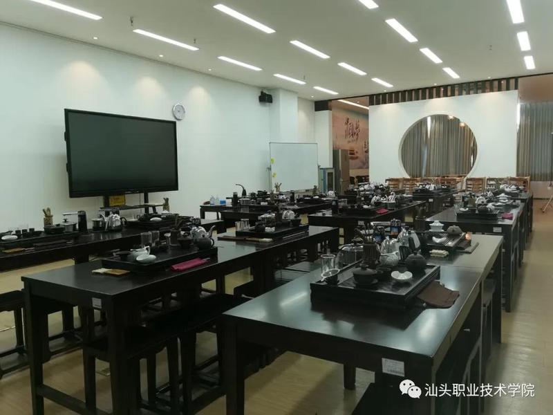管理学院党政办主任陈海山热情接待了我院老师。在陈主任的带领陪同下,大家参观了茶艺实训室、VR导游实训室、会展多媒体互动展厅等多个实训室。在茶艺实训室,宾主双方进行亲切座谈,着重就茶艺与茶文化的专业设置与就业渠道等做了深入交流。陈主任重点介绍了广轻工茶艺实训室的建设情况,特别提出茶艺课程开设的必要性,指出当前不少企业对茶艺师有较大的需求缺口,毕业生供不应求。陈主任认为潮汕地区茶文化氛围浓厚,茶叶生产与茶艺历史渊源深远,在汕职院开设茶艺专业或茶艺课程有极大的地域优势。杨映红副主任表示茶艺课程已列入文秘、文化创意与策划专业课程中,校内茶艺实训室也正在加紧筹建中,接下来汕职院将培养出更多适应市场需求的优秀人才。