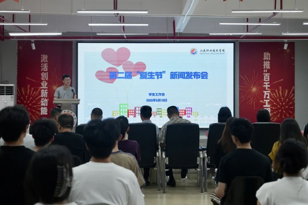 发布会上,陈国辉详细介绍了第二届“爱生节”的组织机构、活动时间、总体安排以及前期筹备情况。据悉,本届“爱生节”以“情满学途,爱满汕职”为主题,将于5月23日正式启幕,持续至6月21日。期间,学校各职能部门、心理与教育教学部、二级学院及各校区将协同联动,精心策划并组织开展 143 项丰富多彩的爱生活动。这些活动将从思想引领、学业帮扶、心理关怀、生活服务等多个维度入手,全方位、多层次满足学生成长发展需求,切实将关爱学生落到实处。