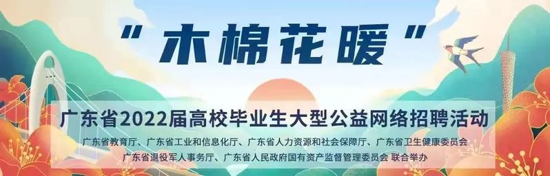 为深入贯彻党的十九大和十九届历次全会精神,落实党中央、国务院决策部署和省委、省政府工作要求,切实做好我省2022届普通高校毕业生就业工作,经研究,省教育厅联合各相关部门举办“木棉花暖”广东省2022届高校毕业生大型网络公益招聘活动。