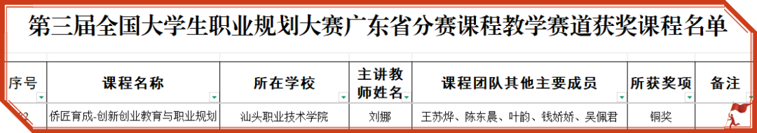 近日,广东省教育厅公布了第三届全国大学生职业规划大赛广东省分赛课程教学赛道获奖课程名单,我校教师团队参赛课程《侨匠育成——创新创业教育与职业规划》获得铜奖。 该课程在艺术设计学院刘娜老师的主持下,王苏烨、陈东晨、叶韵、钱娇娇、吴佩君等老师协同参与,立足学生科学就业观与成才观的培养,创新融合地方“侨”文化资源与“工匠精神”育人内涵,构建了富有特色的育人模式,并在教学实践中取得显著成效,展现了我校在职业规划与创新创业教育方面的探索成果。此次获奖,既是对教师团队教学创新与实践成效的肯定,也是对我校持续深化教育教学改革的激励。学生工作处将以此次获奖为契机,认真总结赛事经验,加强项目培育与成果推广;教师团队进一步深化课程内涵建设,推动大赛经验反哺日常教学,持续优化“侨匠育成”特色模式,助力学生综合素质与就业竞争力的全面提升。